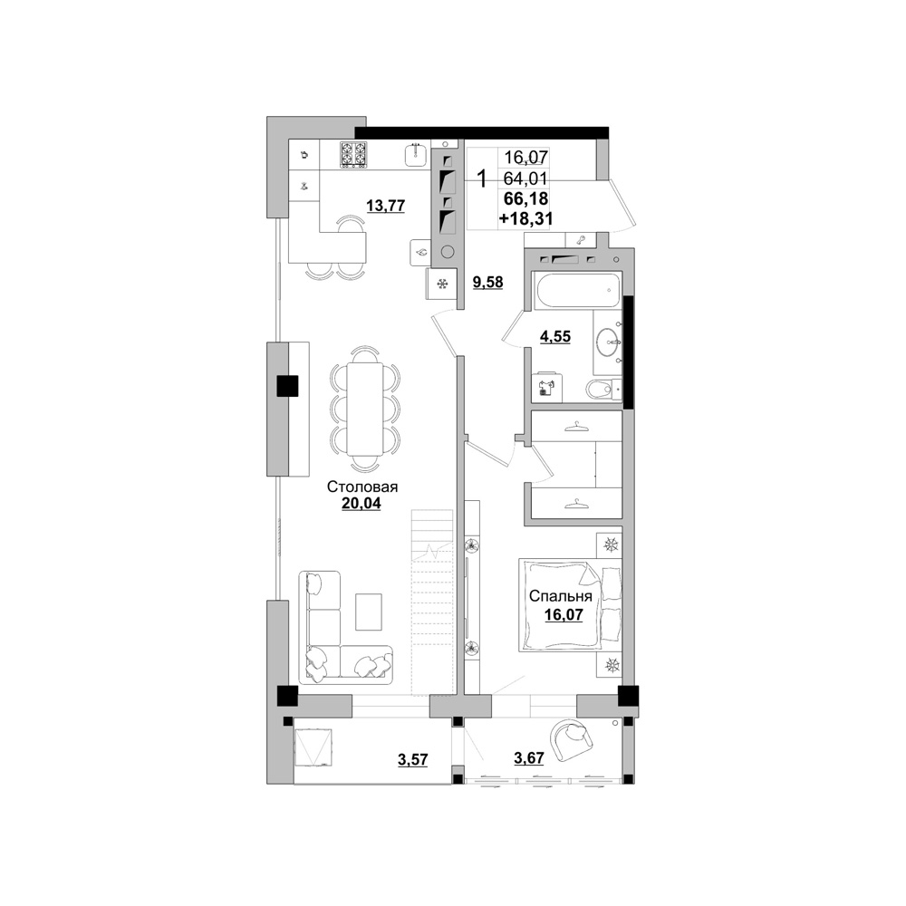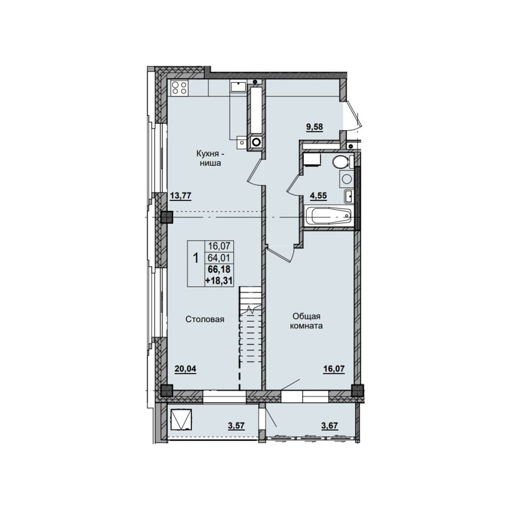 1-комн. 88,4 м² ・ № 166 ・ этаж 16/16 ・ ЖК Зеркальный лес 1 этап