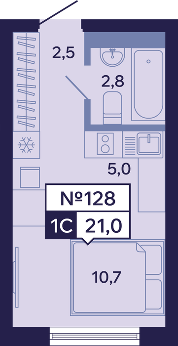 Студия 21,00 м² ・ № 128 ・ этаж 13/16 ・ ЖК "Ленские высоты", корп. 9