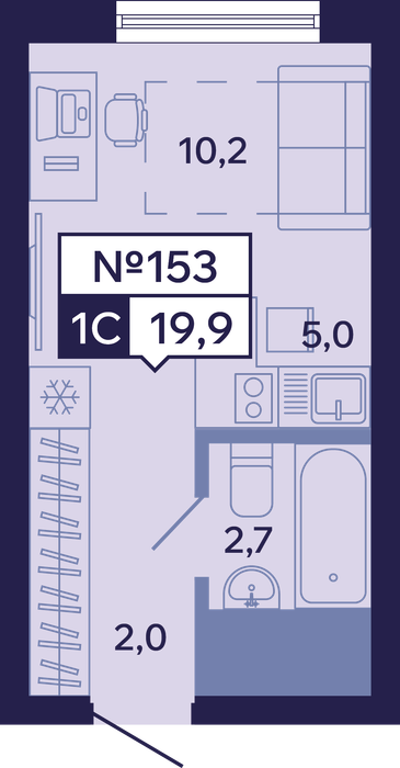 Студия 19,90 м² ・ № 153 ・ этаж 15/16 ・ ЖК "Ленские высоты", корп. 9