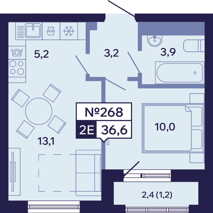 2-комн. 36,40 м² ・ № 268 ・ этаж 14/16 ・ ЖК "Ленские высоты", корп. 9
