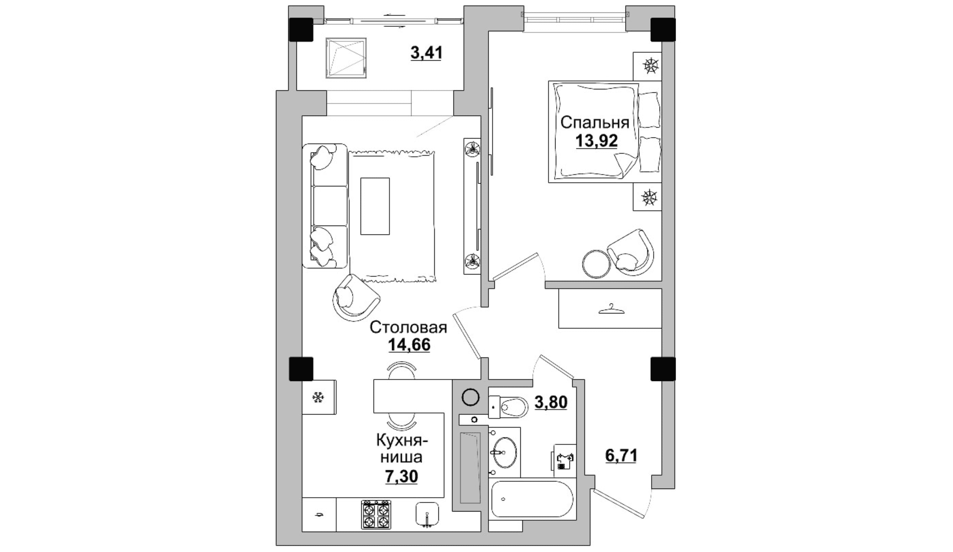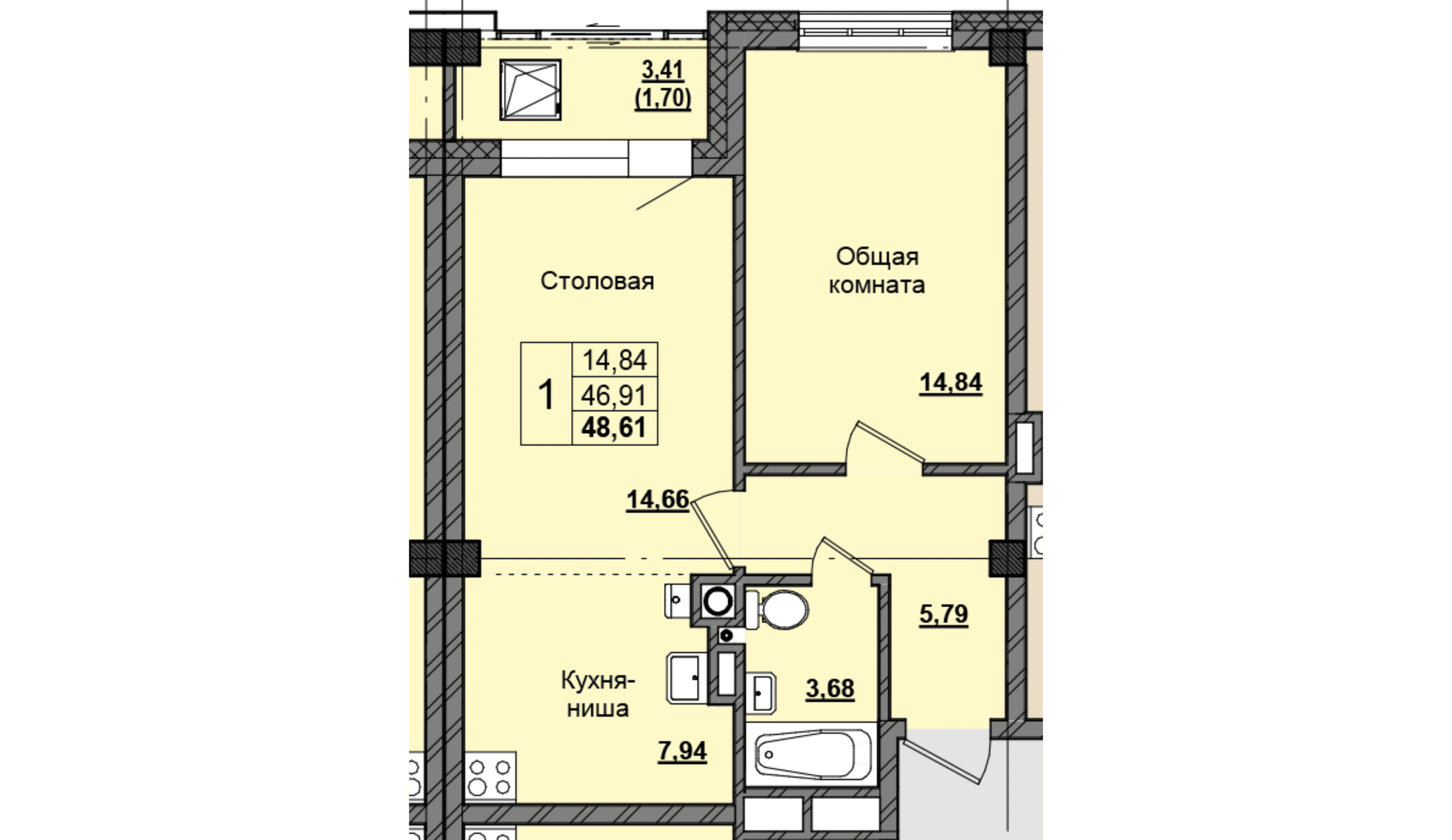 1-комн. 49,8 м² ・ № 110 ・ этаж 11/12 ・ ЖК Алгыс 2 этап
