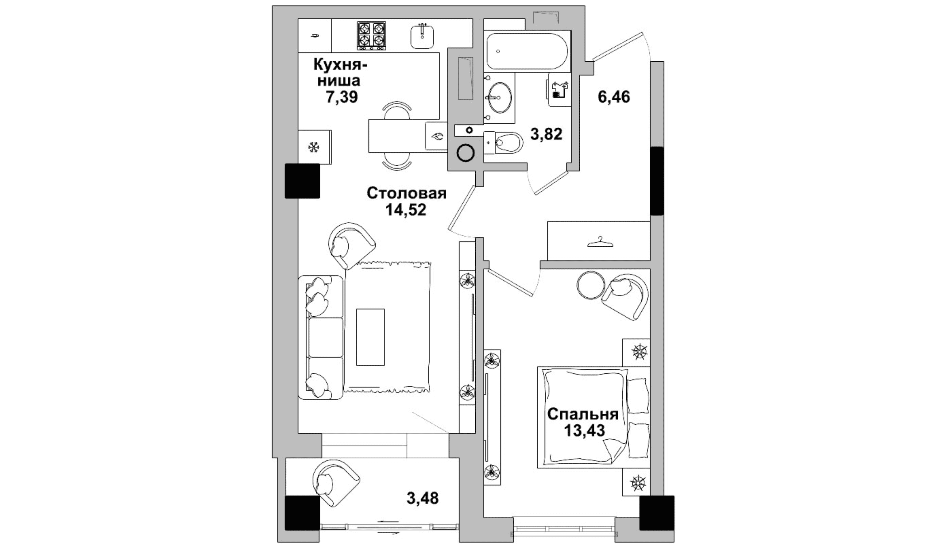 1-комн. 30,38 м² ・ № 26 ・ этаж 3/12 ・ ЖК Алгыс 2 этап