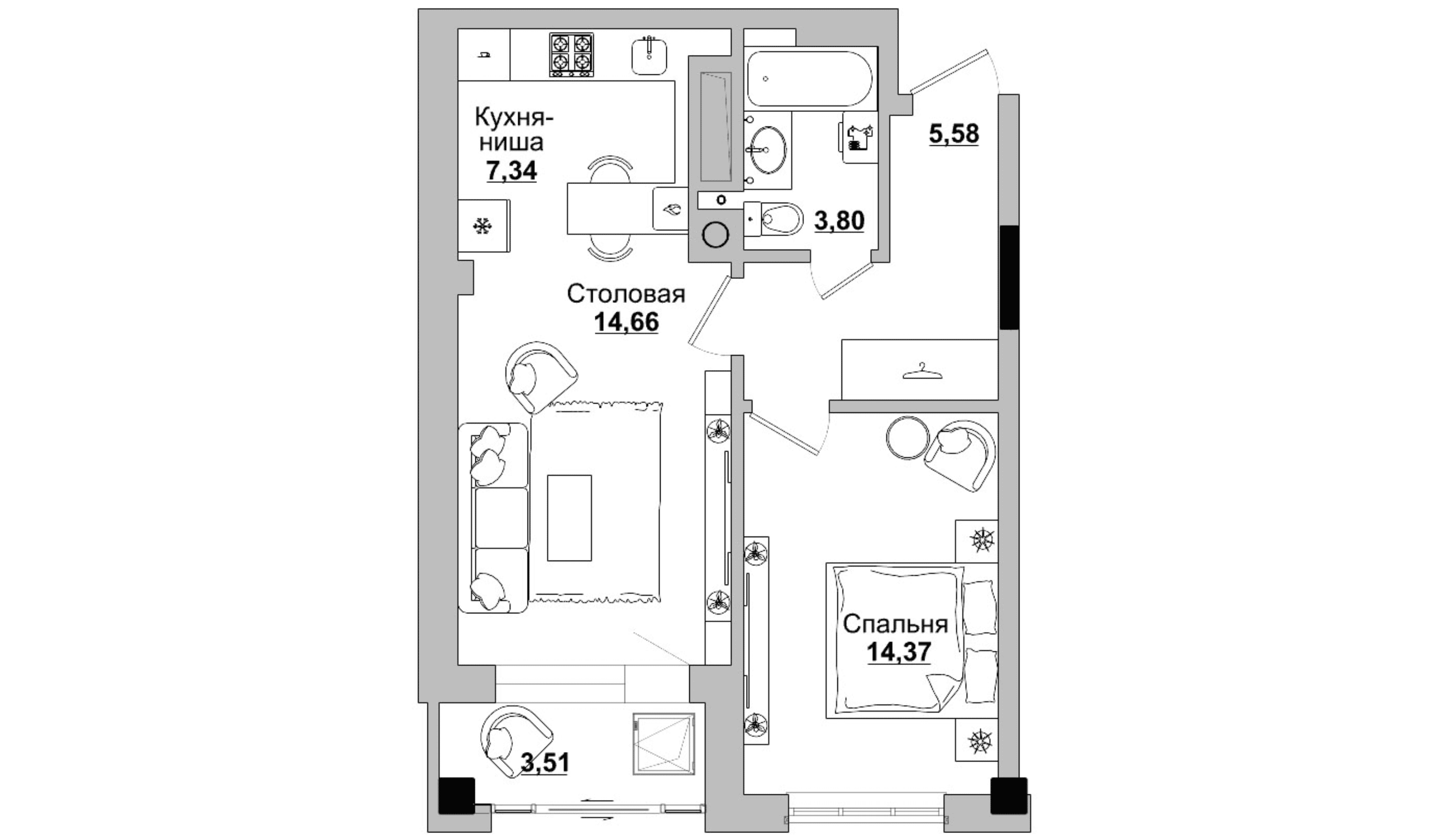 1-комн. 49,26 м² ・ № 99 ・ этаж 10/12 ・ ЖК Алгыс 2 этап