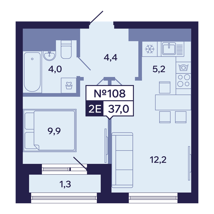2-комн. 37,00 м² ・ № 108 ・ этаж 15/16 ・ ЖК "Ленские высоты", корп. 1