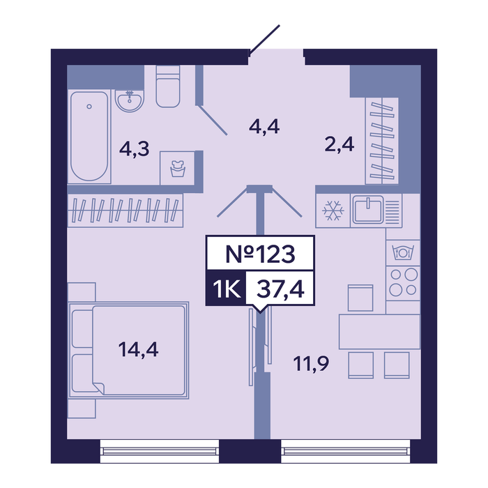 1-комн. 37,40 м² ・ № 123 ・ этаж 2/13 ・ ЖК "Ленские высоты", корп. 1
