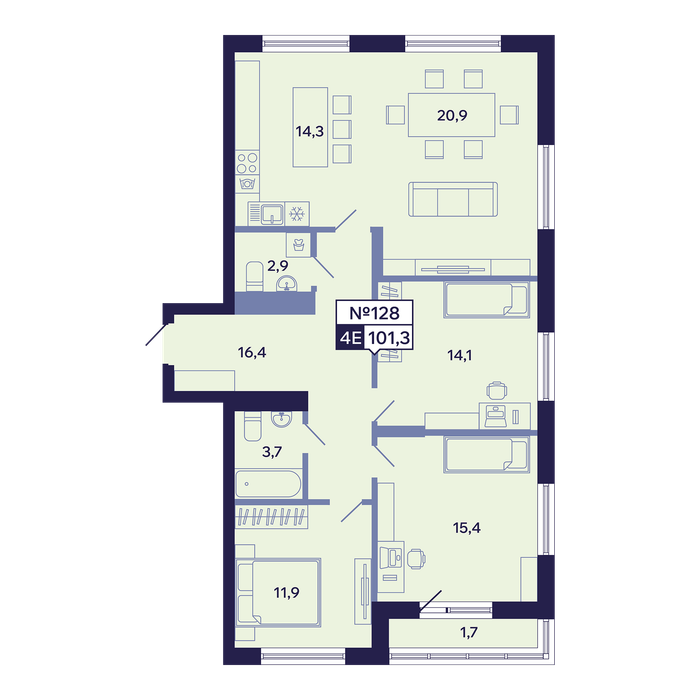 4-комн. 101,30 м² ・ № 128 ・ этаж 3/13 ・ ЖК "Ленские высоты", корп. 1