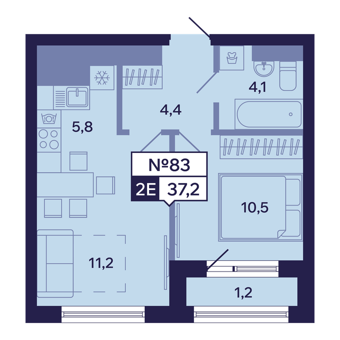 2-комн. 37,20 м² ・ № 83 ・ этаж 12/16 ・ ЖК "Ленские высоты", корп. 1