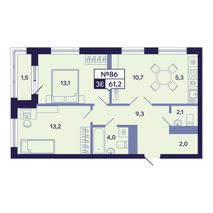 3-комн. 61,20 м² ・ № 86 ・ этаж 12/16 ・ ЖК "Ленские высоты", корп. 1