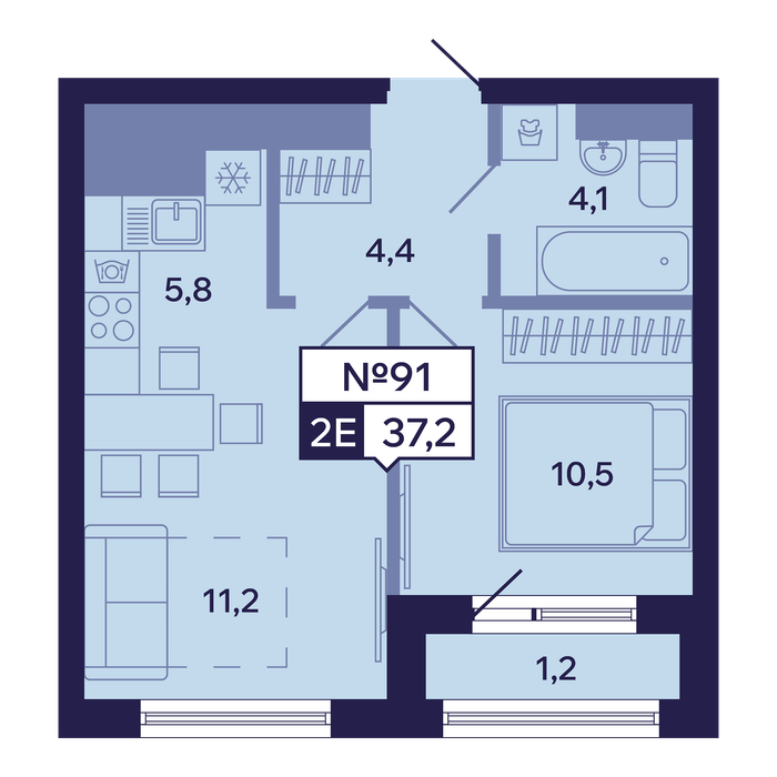 2-комн. 37,20 м² ・ № 91 ・ этаж 13/16 ・ ЖК "Ленские высоты", корп. 1