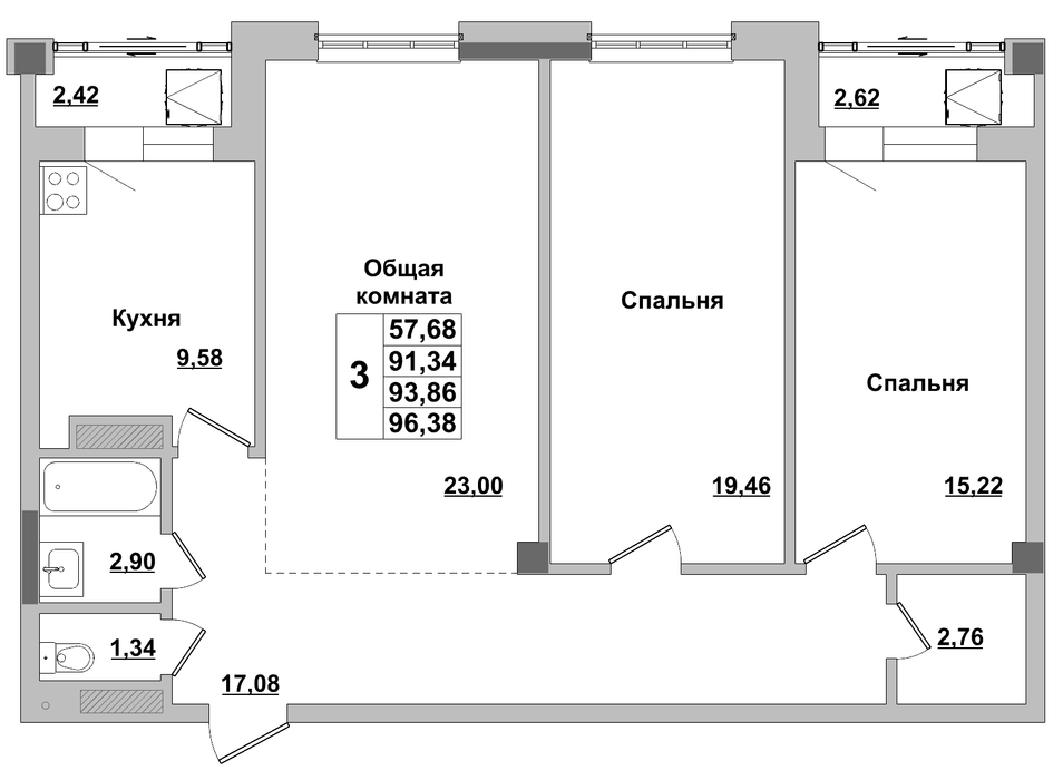 3-комн. 93,86 м² ・ № 103 ・ этаж 14/16 ・ ЖК Алгыс 3 этап