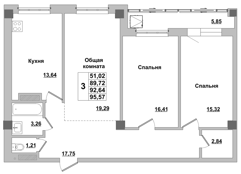 3-комн. 92,64 м² ・ № 198 ・ этаж 12/16 ・ ЖК Алгыс 3 этап