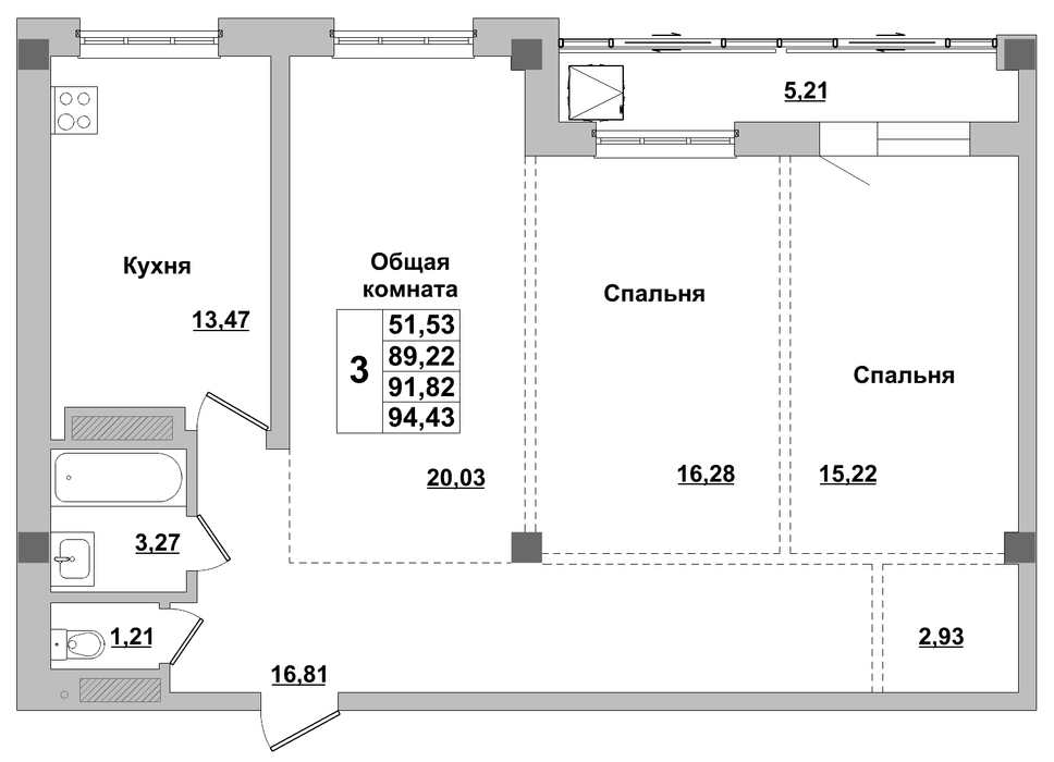 3-комн. 91,82 м² ・ № 225 ・ этаж 16/16 ・ ЖК Алгыс 3 этап