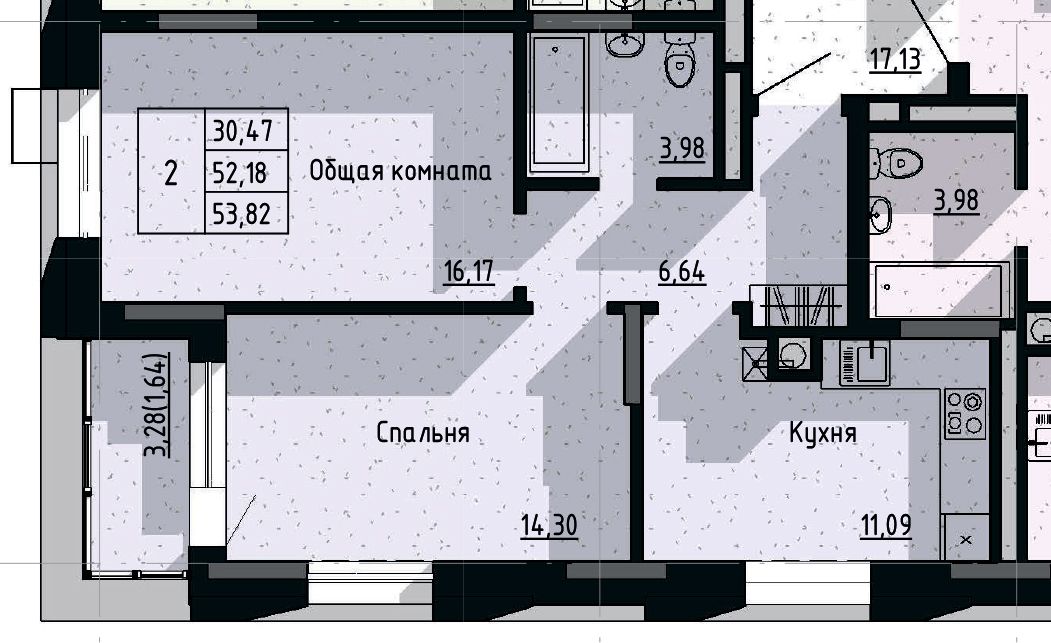 2-комн. 53,82 м² ・ № 2 ・ этаж 1/16 ・ ЖК Сосновый бор