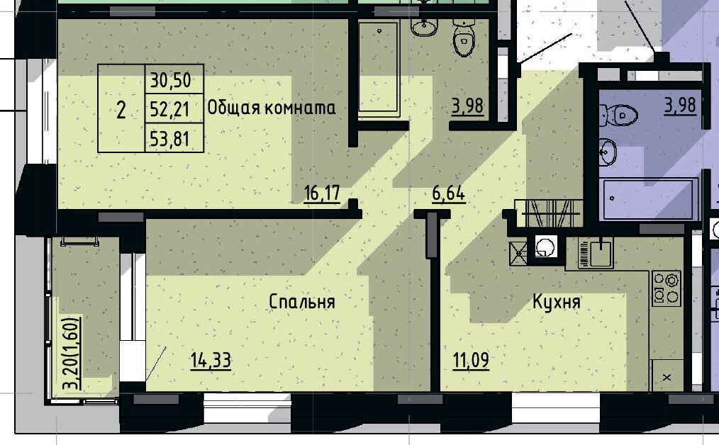 2-комн. 53,81 м² ・ № 28 ・ этаж 5/16 ・ ЖК Сосновый бор