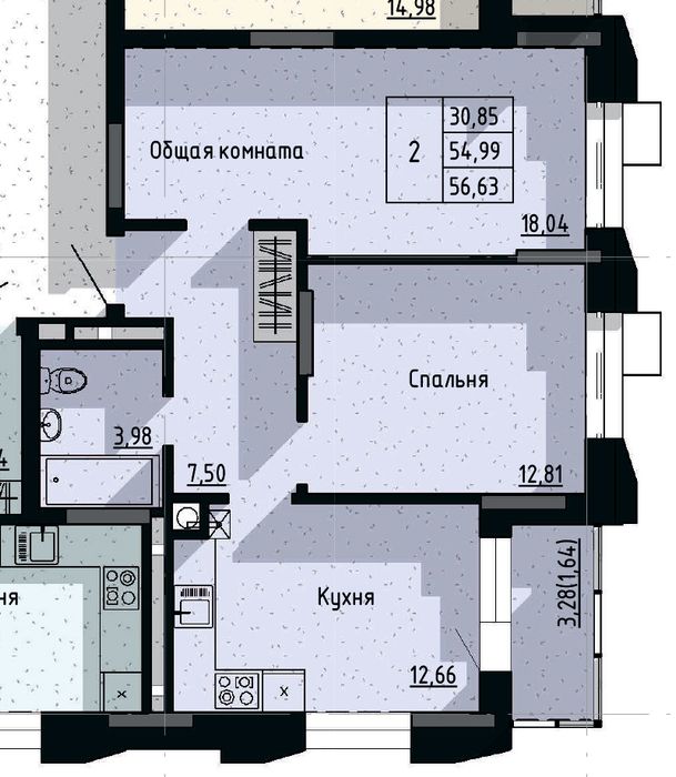 2-комн. 56,63 м² ・ № 7 ・ этаж 2/16 ・ ЖК Сосновый бор