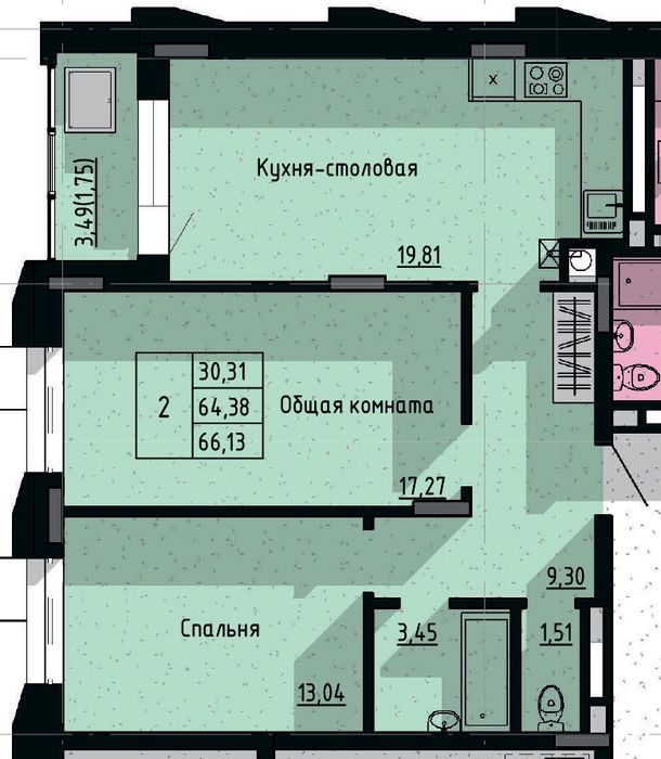 66.13 м2