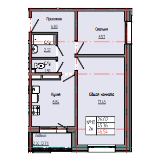 2-комн. 46,61 м² ・ № 10 ・ этаж 3/4 ・ ЗВЕЗДНЫЙ С3Б