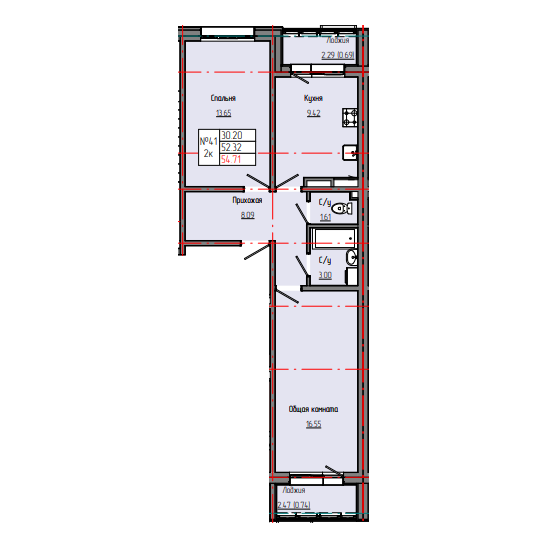 2-комн. 54,79 м² ・ № 41 ・ этаж 3/4 ・ ЗВЕЗДНЫЙ С3Б