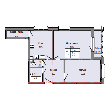 2-комн. 53,81 м² ・ № 1 ・ этаж 1/8 ・ ЗВЕЗДНЫЙ С3В