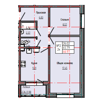 2-комн. 47,19 м² ・ № 2 ・ этаж 1/8 ・ ЗВЕЗДНЫЙ С3В