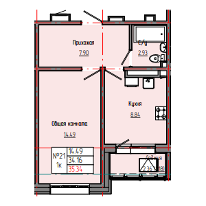 1-комн. 35,32 м² ・ № 21 ・ этаж 5/8 ・ ЗВЕЗДНЫЙ С3В