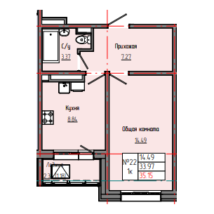 1-комн. 35,32 м² ・ № 22 ・ этаж 5/8 ・ ЗВЕЗДНЫЙ С3В