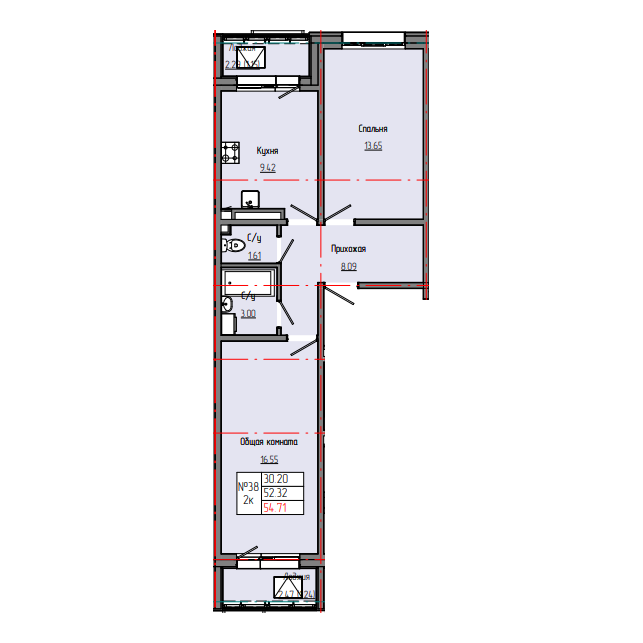 2-комн. 54,78 м² ・ № 38 ・ этаж 8/8 ・ ЗВЕЗДНЫЙ С3В