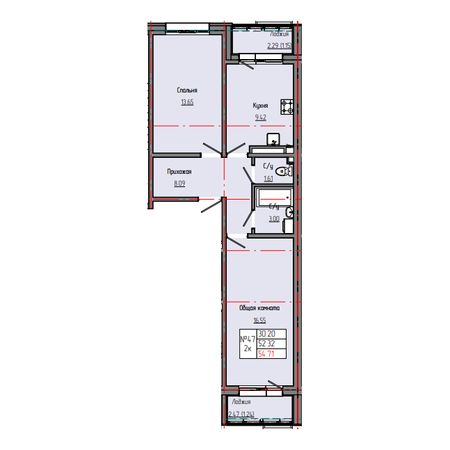 2-комн. 54,78 м² ・ № 47 ・ этаж 3/8 ・ ЗВЕЗДНЫЙ С3В