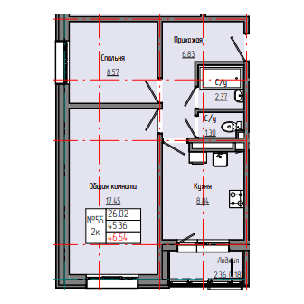 2-комн. 46,61 м² ・ № 55 ・ этаж 4/8 ・ ЗВЕЗДНЫЙ С3В