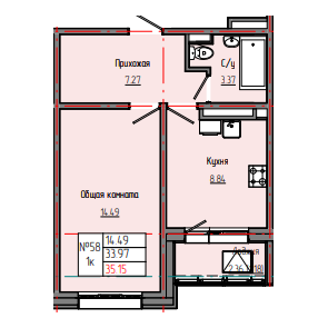 1-комн. 35,32 м² ・ № 58 ・ этаж 5/8 ・ ЗВЕЗДНЫЙ С3В