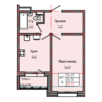 1-комн. 35,92 м² ・ № 7 ・ этаж 2/8 ・ ЗВЕЗДНЫЙ С3В