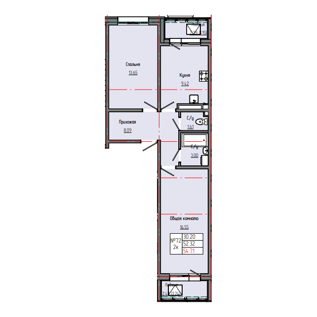 2-комн. 54,78 м² ・ № 72 ・ этаж 8/8 ・ ЗВЕЗДНЫЙ С3В