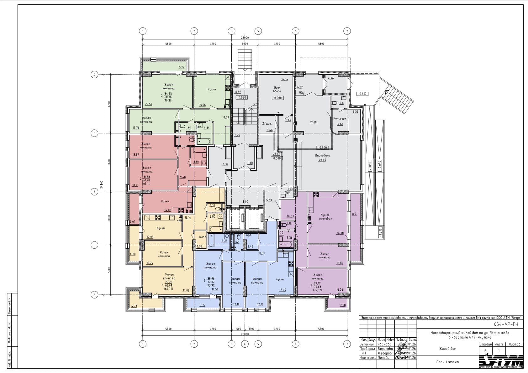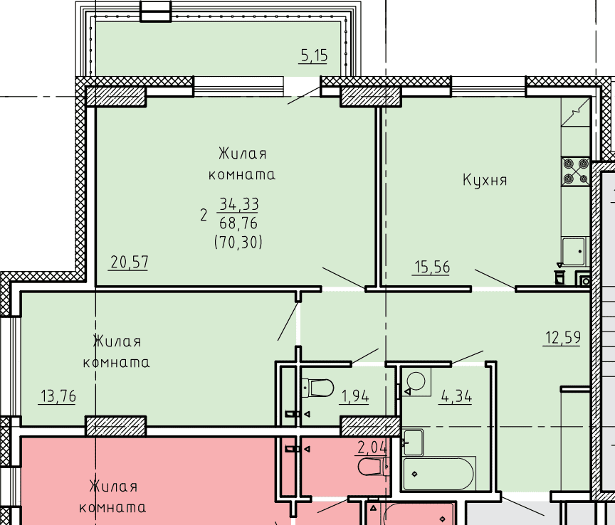 2-комн. 70,31 м² ・ № 5 ・ этаж 1/16 ・ ЖК по ул. Лермонтова, д. 30