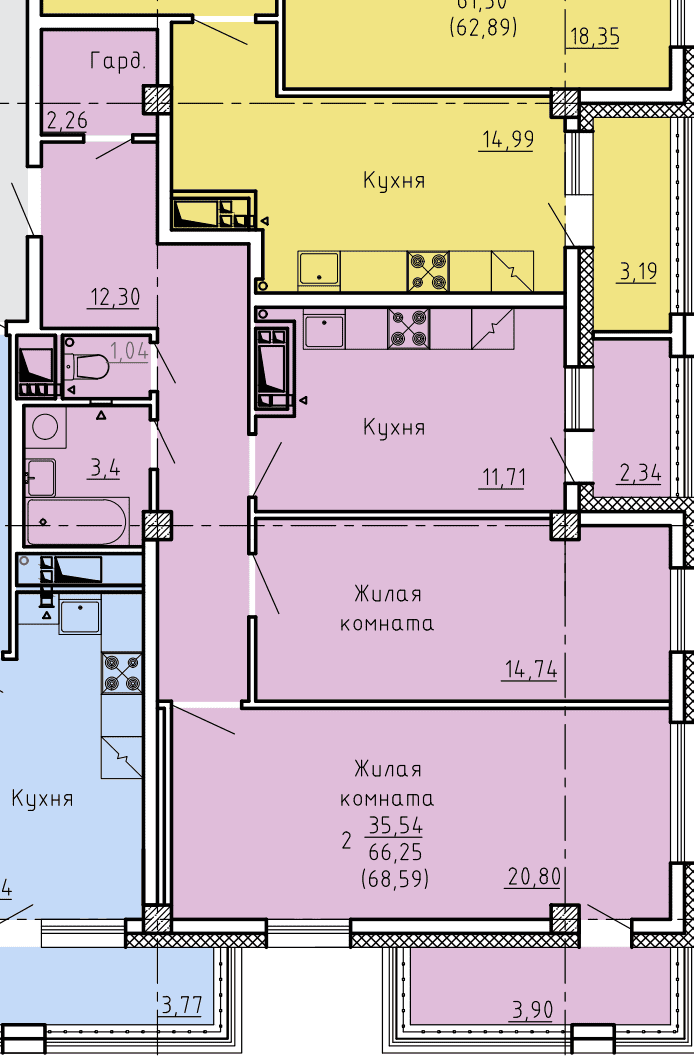 2-комн. 68,59 м² ・ № 85 ・ этаж 13/16 ・ ЖК по ул. Лермонтова, д. 30