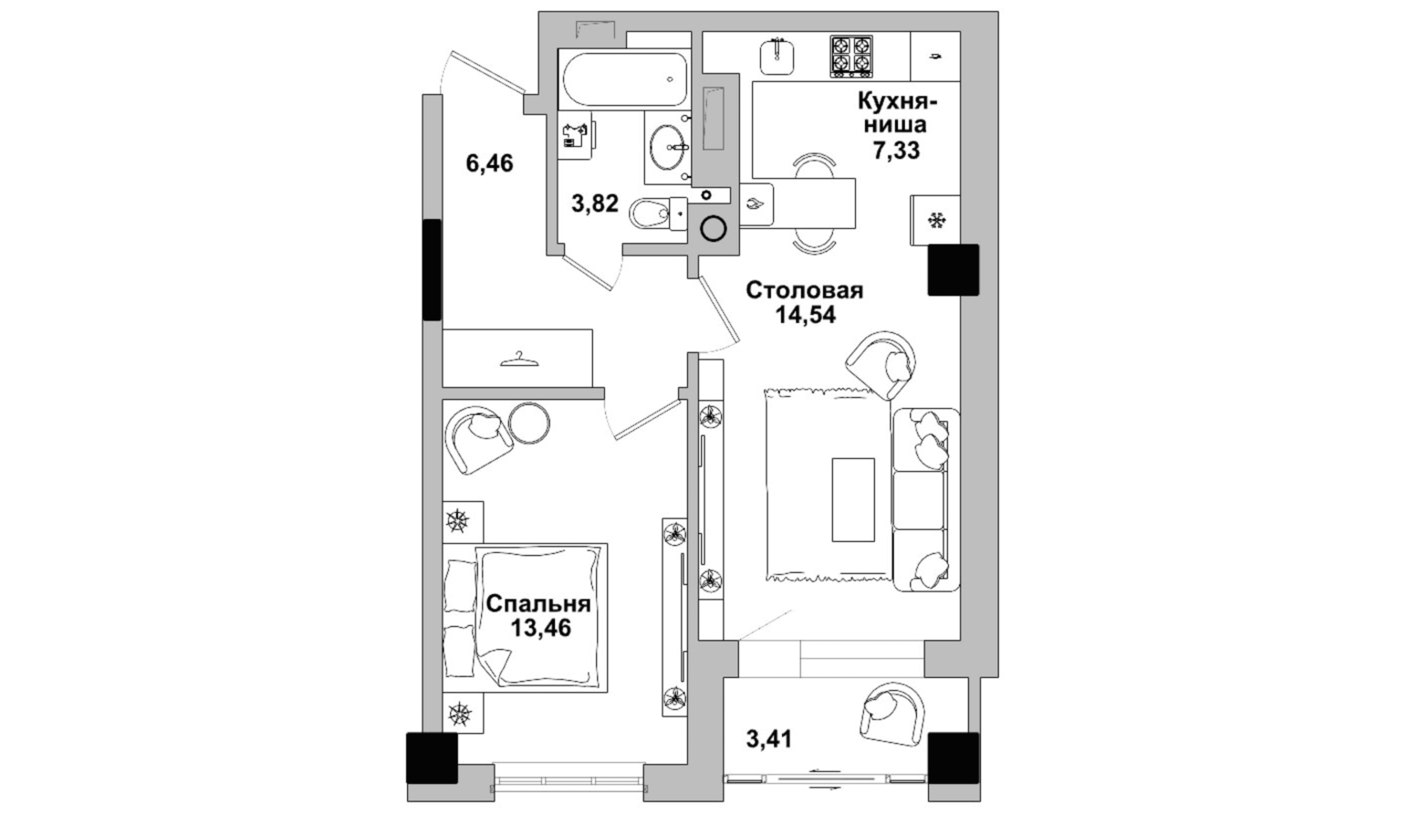1-комн. 49,02 м² ・ № 152 ・ этаж 4/12 ・ ЖК Алгыс 2 этап
