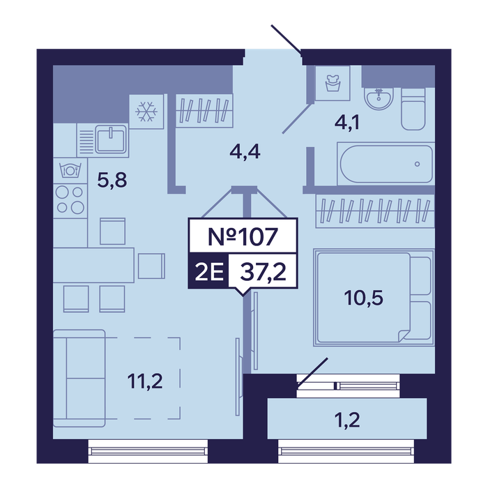 2-комн. 37,20 м² ・ № 107 ・ этаж 15/16 ・ ЖК "Ленские высоты", корп. 1