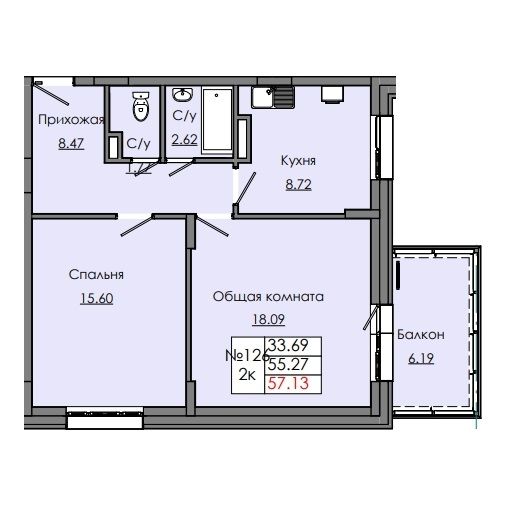 2-комн. 57,13 м² ・ № 126 ・ этаж 5/8 ・ Звездный С1А