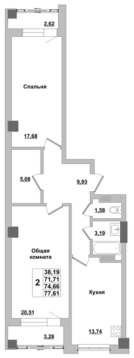 74.66 м2