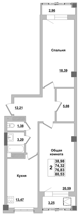 76.83 м2