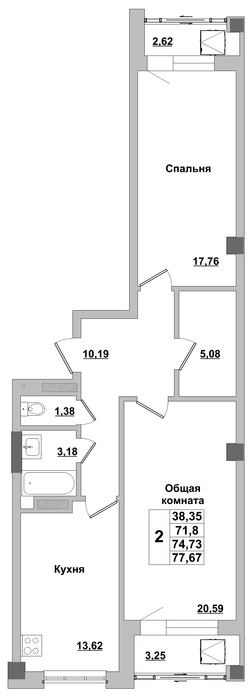 2-комн. 74,73 м² ・ № 73 ・ этаж 10/16 ・ ЖК Алгыс 3 этап