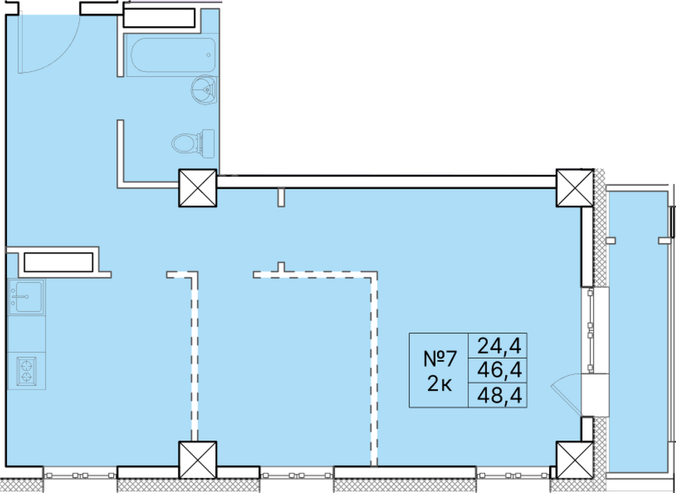 2-комн. 48,40 м² ・ № 27 ・ этаж 4/16 ・ ЖК Времена года, Лето (2 очередь)