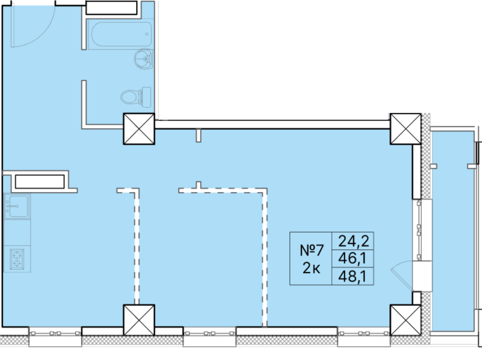 2-комн. 48,10 м² ・ № 5 ・ этаж 2/16 ・ ЖК Времена года, Лето (2 очередь)