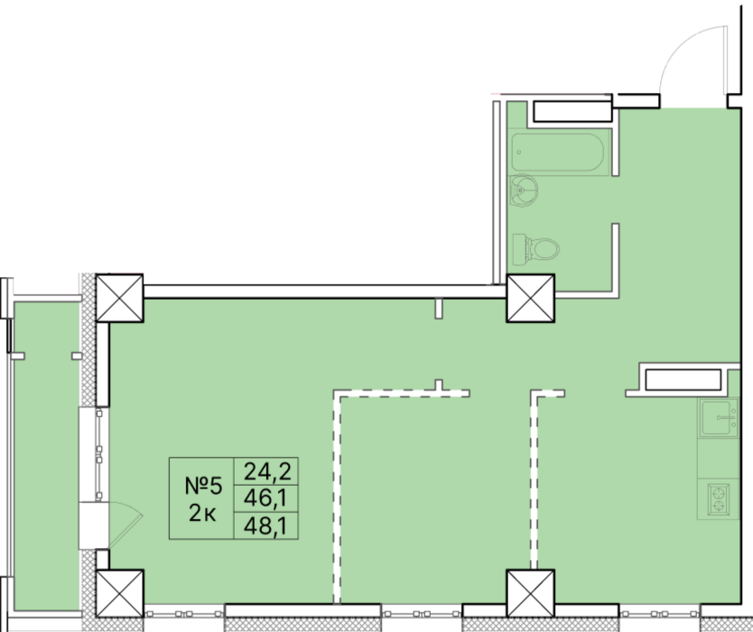 2-комн. 48,10 м² ・ № 7 ・ этаж 2/16 ・ ЖК Времена года, Лето (2 очередь)