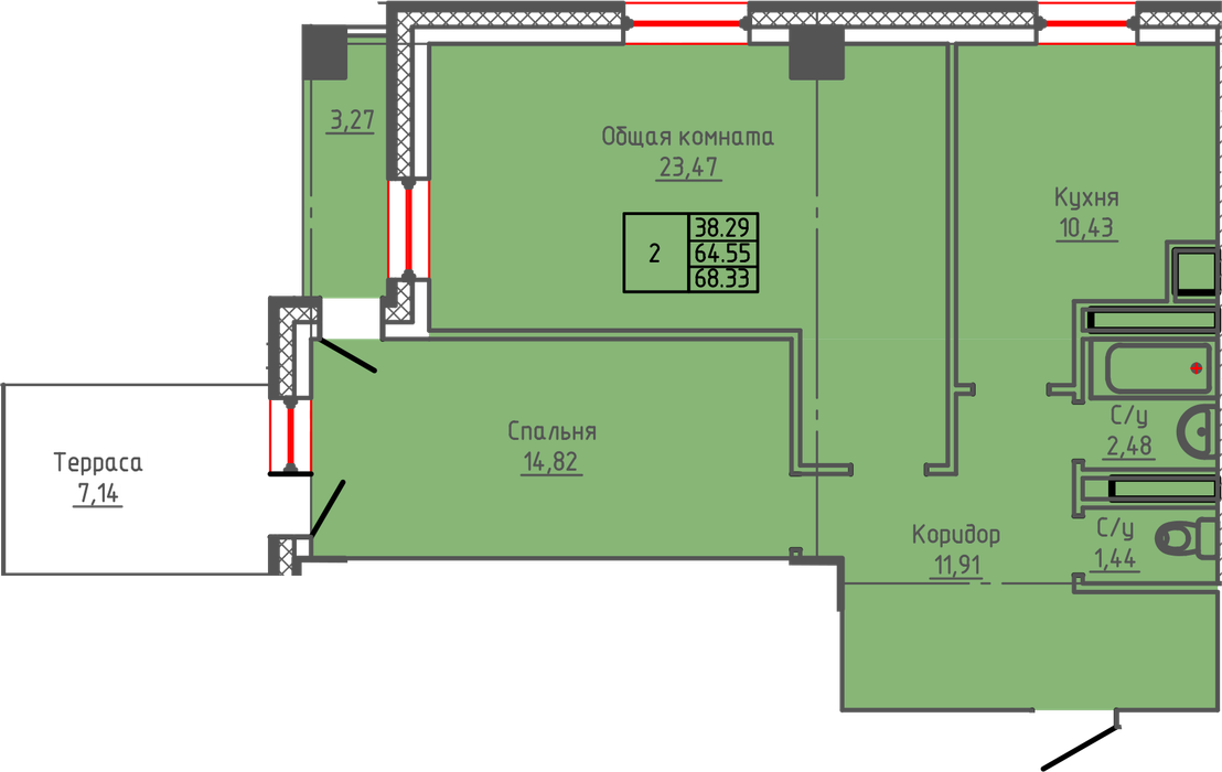 68.33 м2