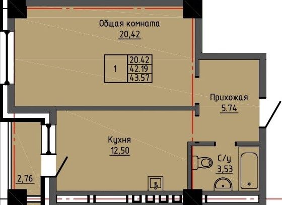 43.57 м2