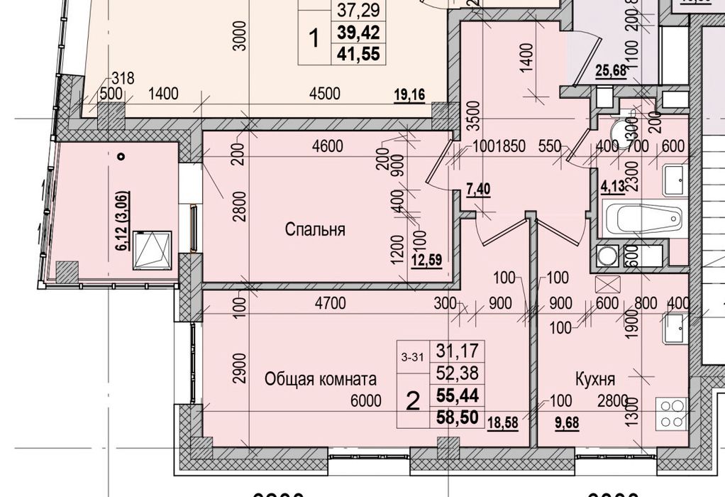 1-комн. 39,85 м² ・ № 149 ・ этаж 3/16 ・ ЖК Гастелло, 1 очередь