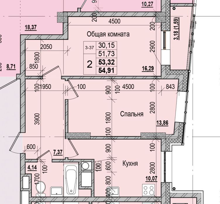 2-комн. 55,39 м² ・ № 155 ・ этаж 4/16 ・ ЖК Гастелло, 1 очередь