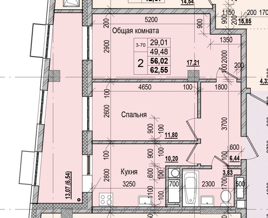 2-комн. 53,21 м² ・ № 188 ・ этаж 7/16 ・ ЖК Гастелло, 1 очередь