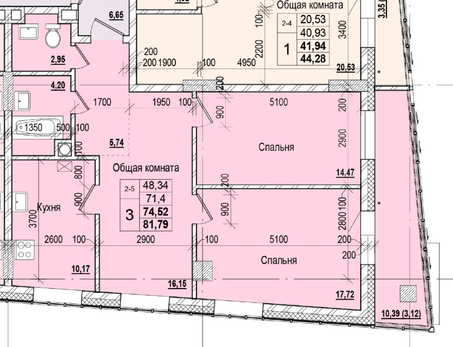 3-комн. 74,52 м² ・ № 2 ・ этаж 1/16 ・ ЖК Гастелло, 1 очередь
