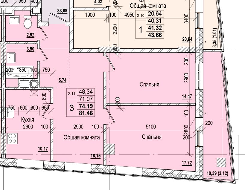3-комн. 74,19 м² ・ № 8 ・ этаж 2/16 ・ ЖК Гастелло, 1 очередь